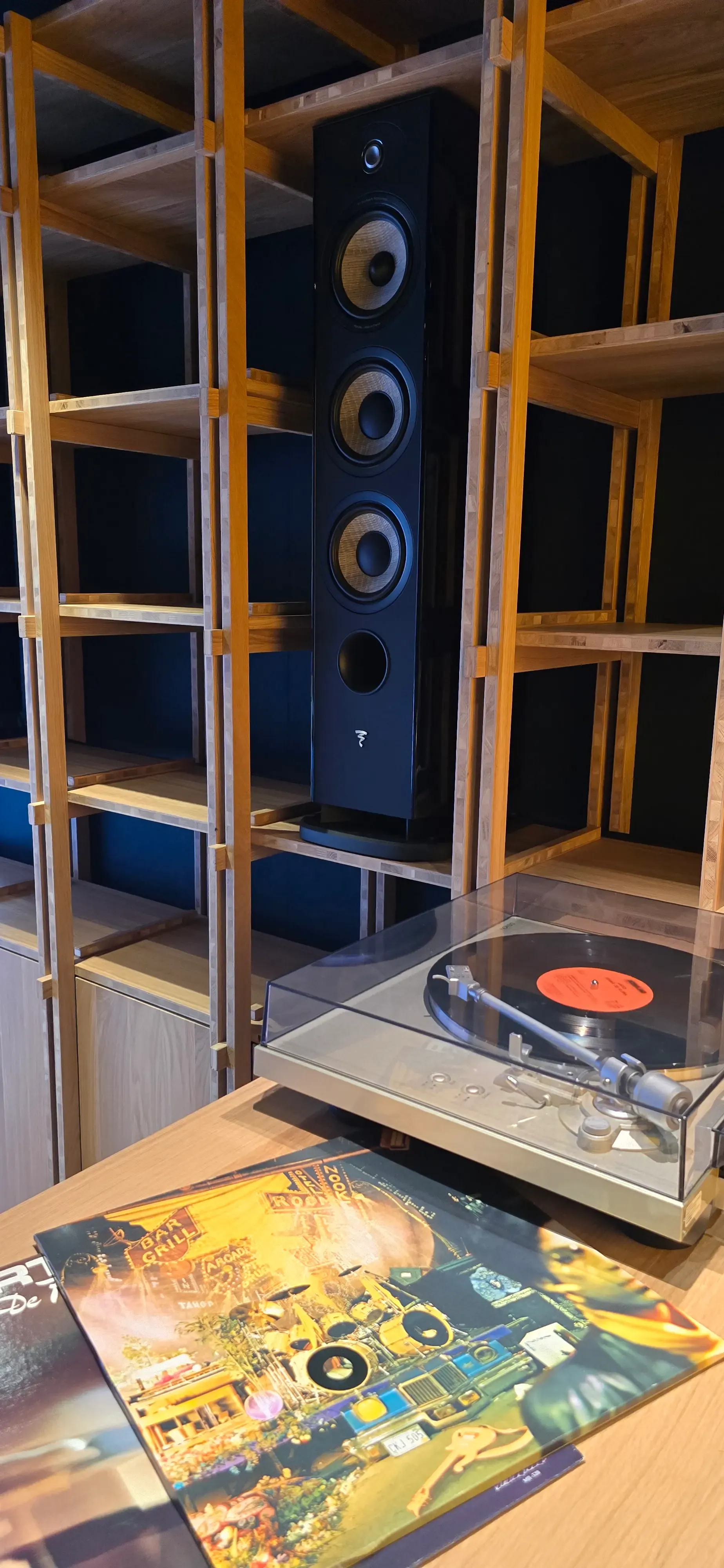 Dans un coin, les vinyles diffusent une musique soigneusement choisie, enveloppant la salle d’une atmosphère à la fois cosy, élégante et vibrante.